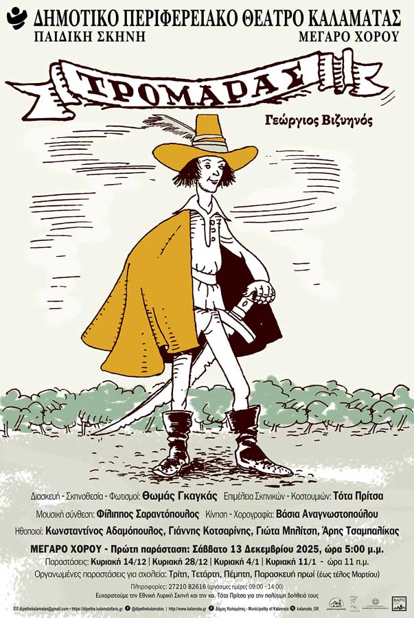 Η Παιδική Σκηνή του Δημοτικού Περιφερειακού Θεάτρου Καλαμάτας παρουσιάζει για τη χειμερινή περίοδο 2025-2026, το αριστούργημα του Γ.Βιζυηνού “Τρομάρας” .